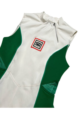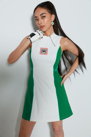真夏のラウンドでも涼しく過ごせるよう、サイドには通気性に数れたメッシュ素材を使用、更に深めのポケットを両サイドに備え付けることで機能性にも優れたワンピースに。