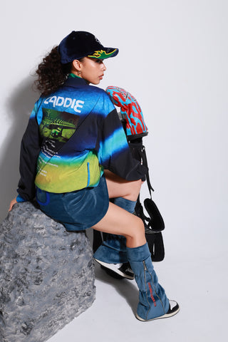 上質なベルベット素材を用いたベースボールキャップで、エレガントな光沢が高級感を演出します。後部のアジャスターには「スライドバックル」が採用されており、頭のサイズに合わせて簡単に調整可能です。フロントには、今季のコレクションテーマ「Serendipity」を表したパズルマーク、キャップ本体のツバにはフレアを3D刺繍で施し、視覚的なインパクトを与えます。